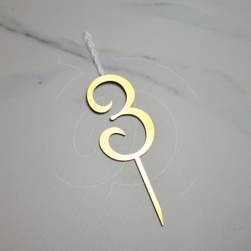 Доставка Свеча-топпер декоративная акриловая Цифра "3" Золото из магазина в вашем городе: